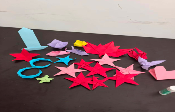 活动精心选取五角星作为核心创作元素,深挖其文化内涵与育人价值。五角星在多元文化中象征“希望”“光明”“信念”与“力量”,折纸过程不仅是对手工技艺的实践,更是对积极精神的具象化教育——通过对折、翻折、塑形等步骤,引导学生在专注中感悟“坚持”的意义,在创造中体会“成长”的价值,让抽象的精神品质转化为可触可感的实践体验,实现了文化浸润与价值引领的有机统一。
