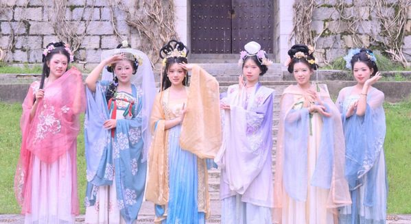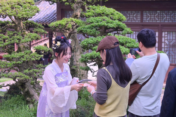 为保障活动高质量落地,美术学院前期与活动主办方开展3轮对接,根据学生专业背景精准匹配岗位,形成“表演创作-宣传推广-志愿服务”三位一体的工作体系。表演类岗位的学生化身“十二花神”国风使者,身着传统汉服,在樱林步道开展行进式演绎,将花朝文化、春日意象与樱花景观深度融合,相关表演片段在抖音、小红书等平台播放,成为活动传播最广的标志性内容;学生组成的宣传摄制组全程参与活动宣传片、游客vlog、城市文旅短视频的拍摄制作,累计产出素材超1000分钟;志愿者团队则承担起现场引导、游客咨询、秩序维护、后勤保障等全链条服务,累计服务游客超万余人次,日均服务时长达10小时,以耐心细致的态度赢得各方好评。