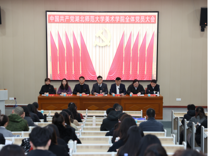 2026年3月19日下午,中共湖北师范大学美术学院全体党员大会在艺术大楼报告厅隆重召开。大会高举旗帜、凝聚共识、部署任务、选举产生学院新一届党的委员会委员和纪律检查委员会委员,圆满完成各项议程,为学院高质量发展擘画蓝图、汇聚力量。会议由美术学院院长卫鹏主持。